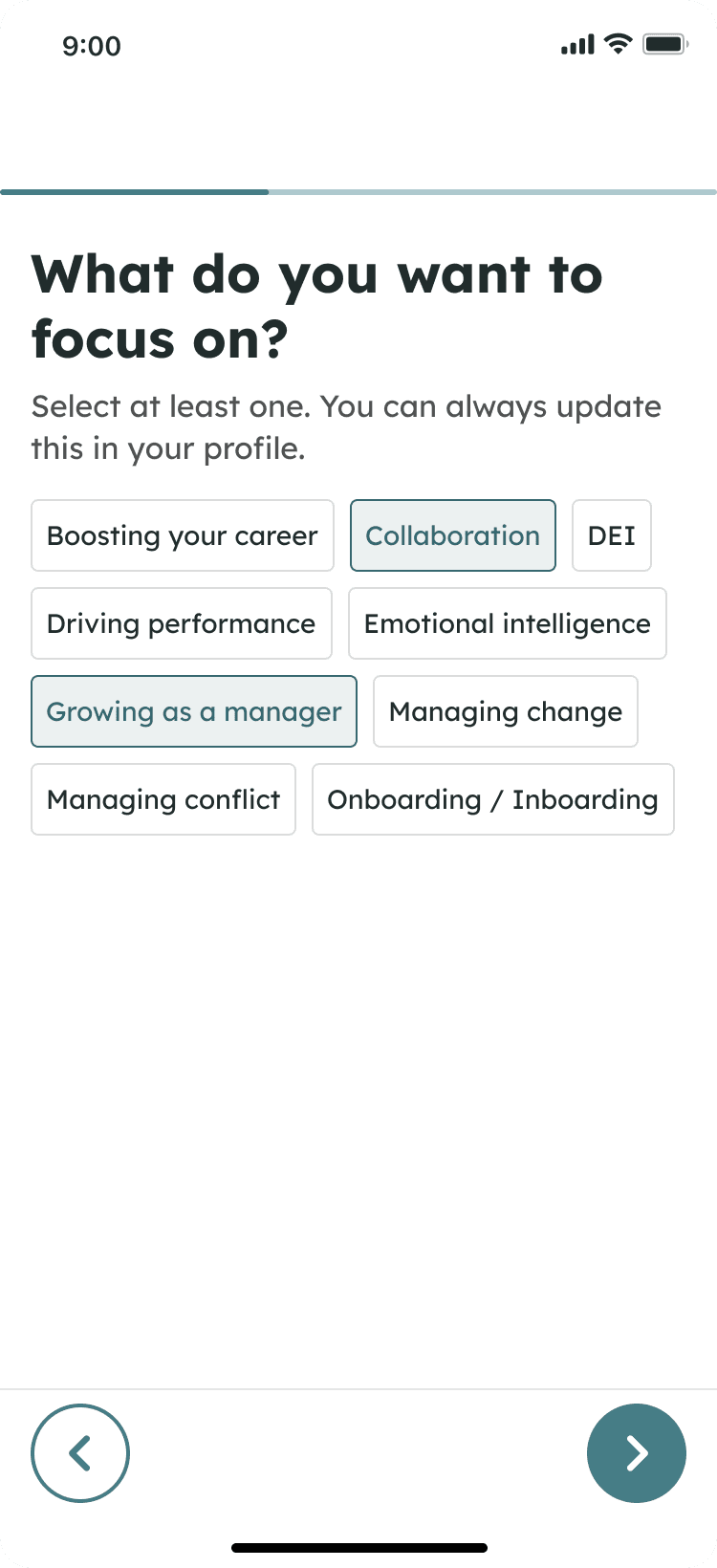 I owned the end-to-end coaching session UX (short, focused, repeatable), the tone + interaction system to keep it conversational, friendly, and lightweight, and built a scalable design system so the product could grow without losing consistency.