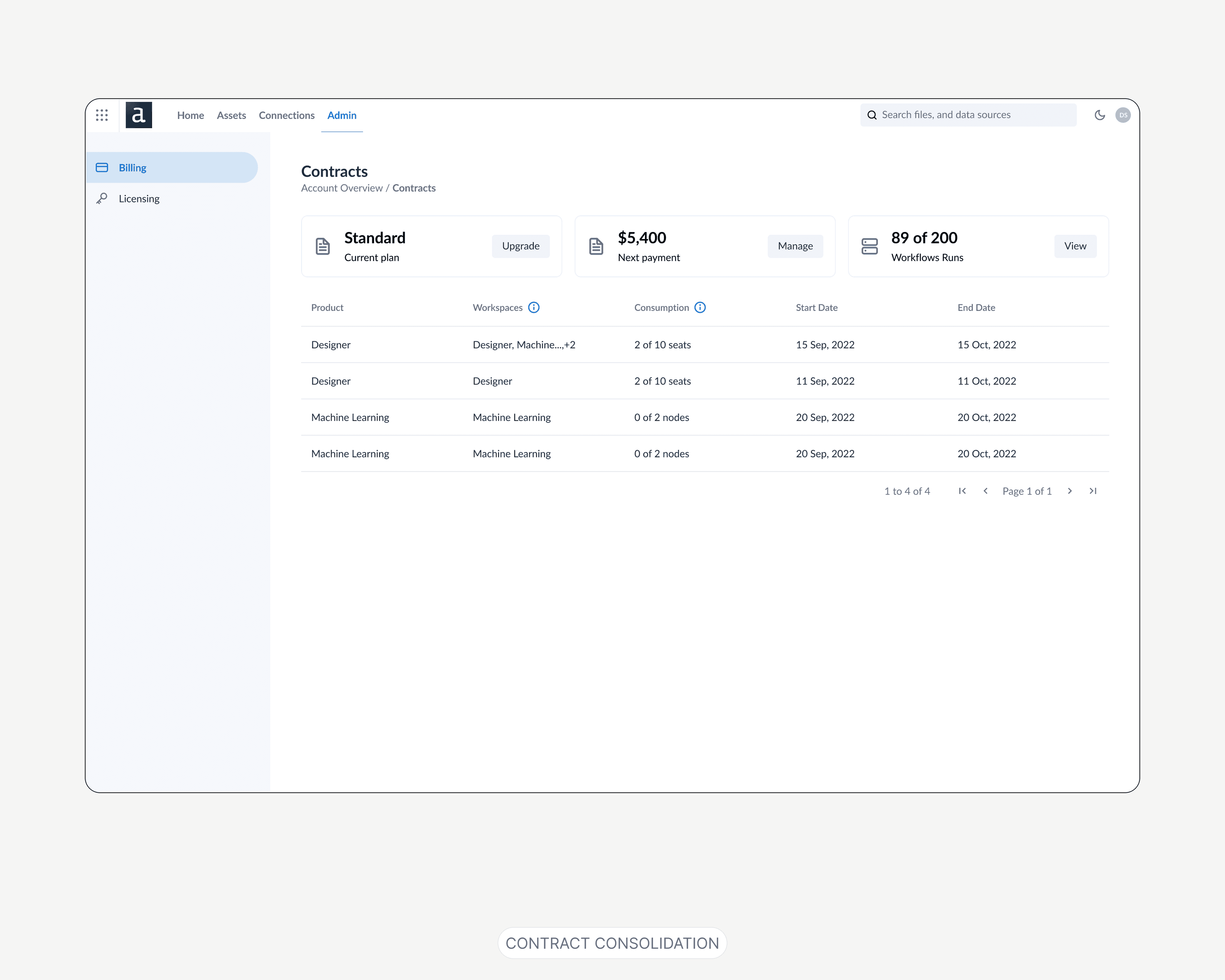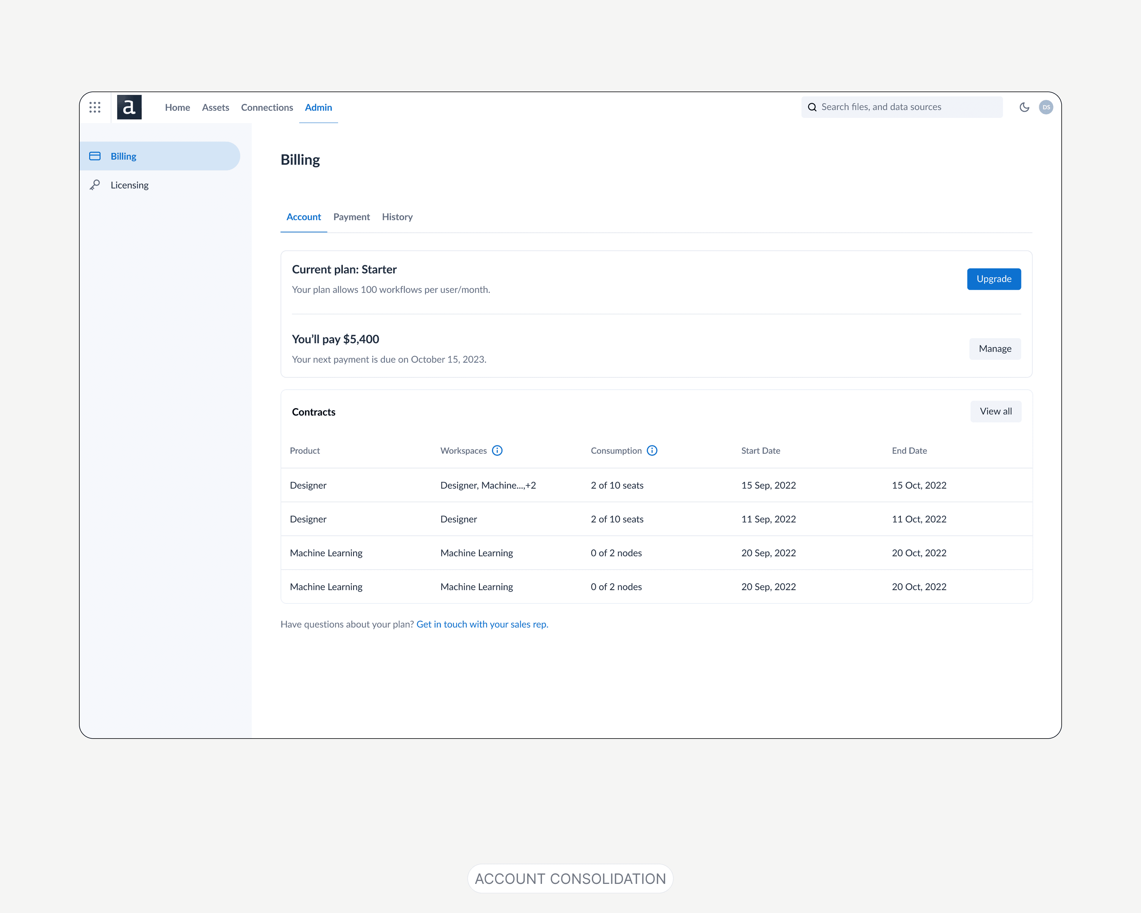 Unified billing view built across all 4 Alteryx cloud products → one place for every account action