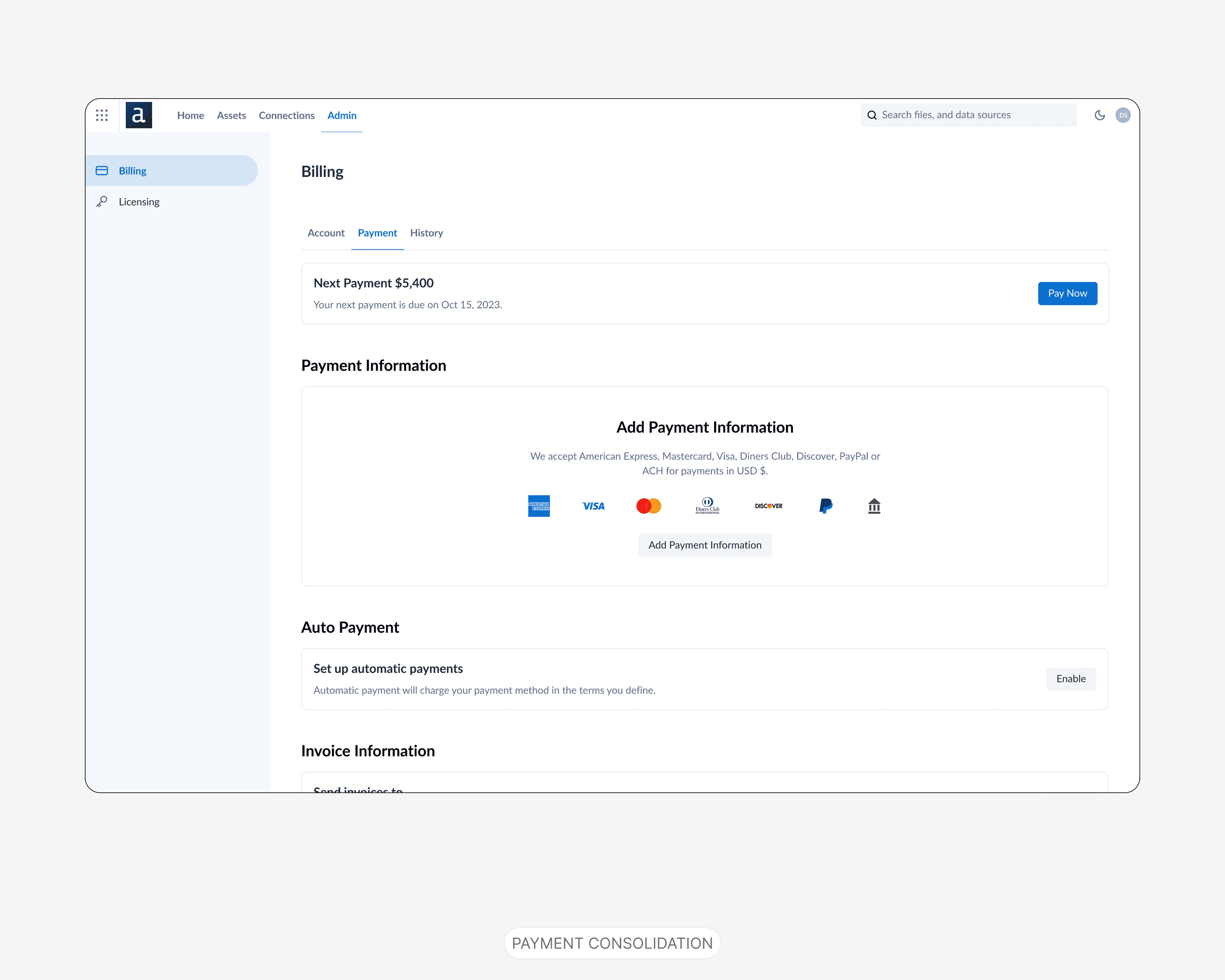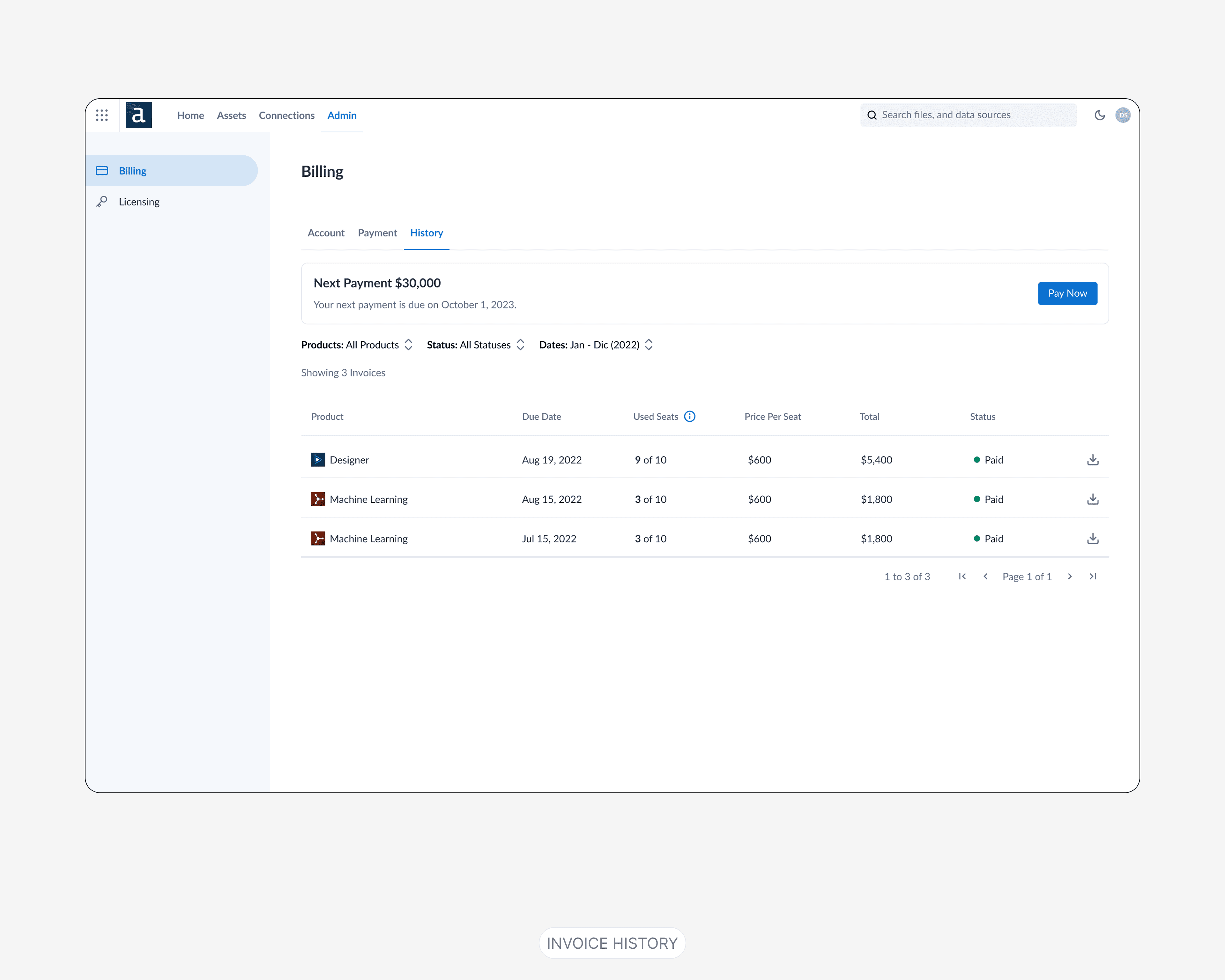 Enterprise admins across four cloud products couldn't see their invoices, couldn't manage subscriptions, and couldn't do anything without calling support. Every billing action was a support ticket. I consolidated everything into a single unified experience