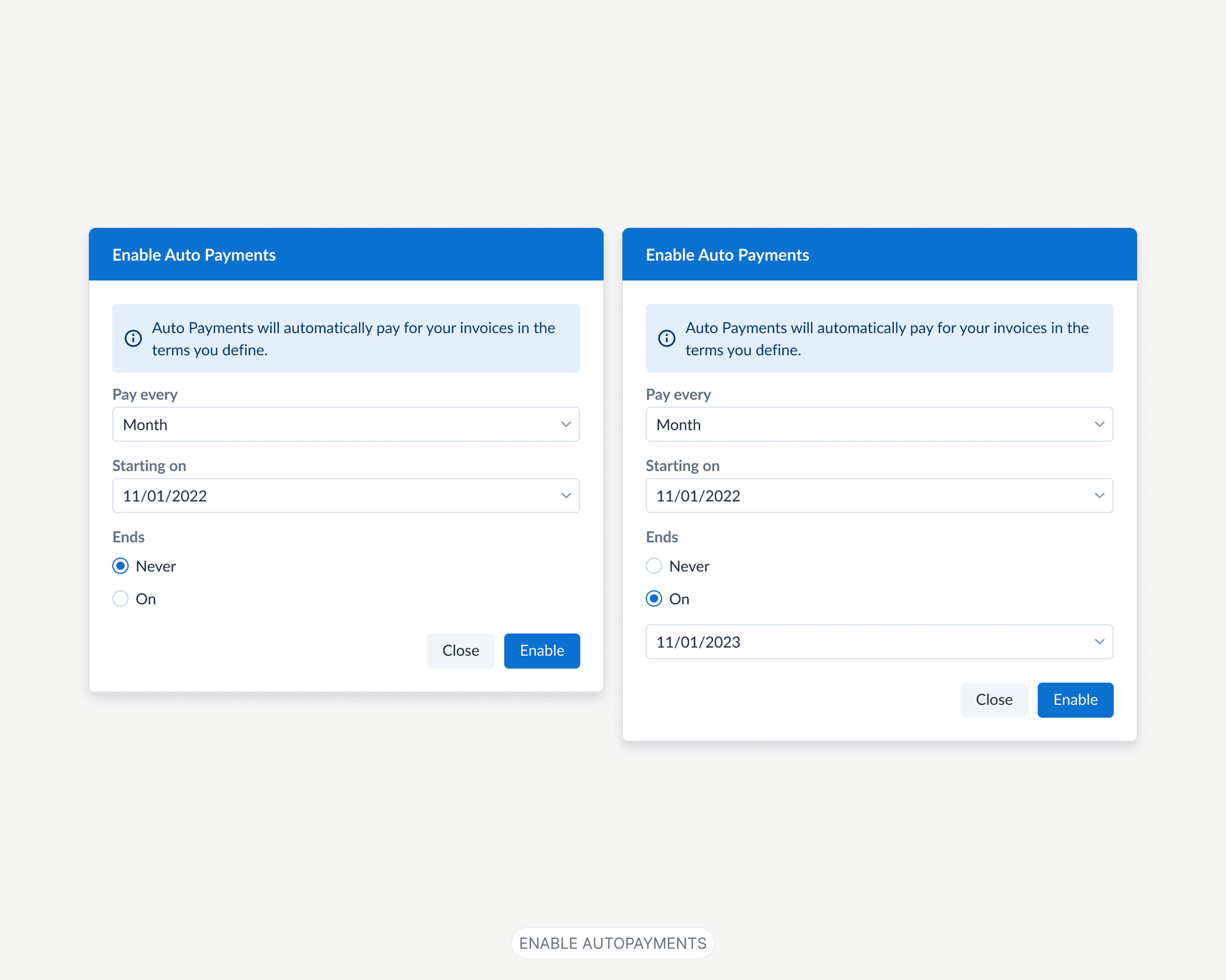 Invoice access, payment scheduling, and status tracking consolidated from four separate experiences