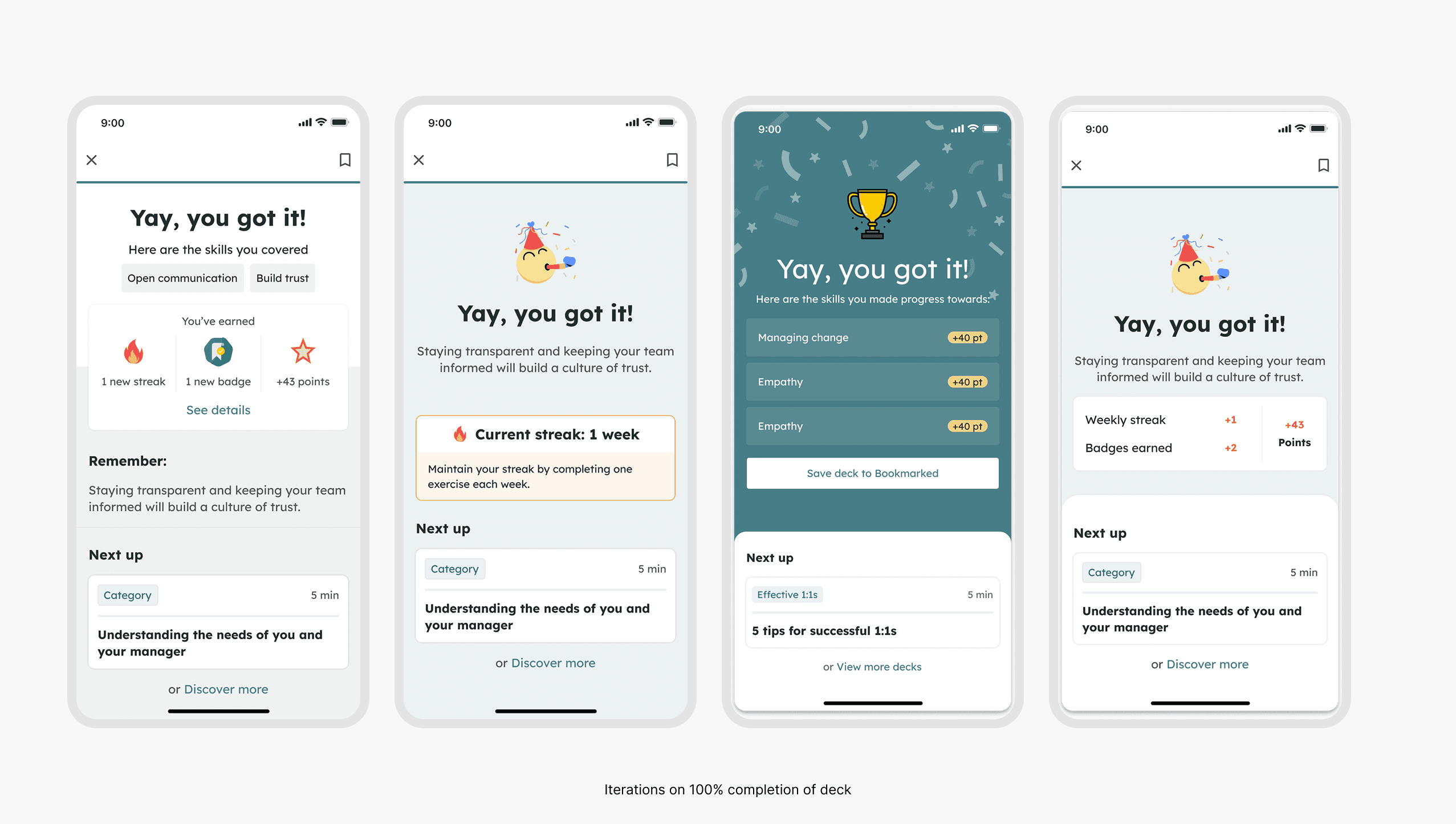 I led the design of a self-coaching tool built to feel personal and easy to use. Each session was short (5 minutes or less), clear, and focused on one small action. We made sure it felt like a real conversation instead of a form.