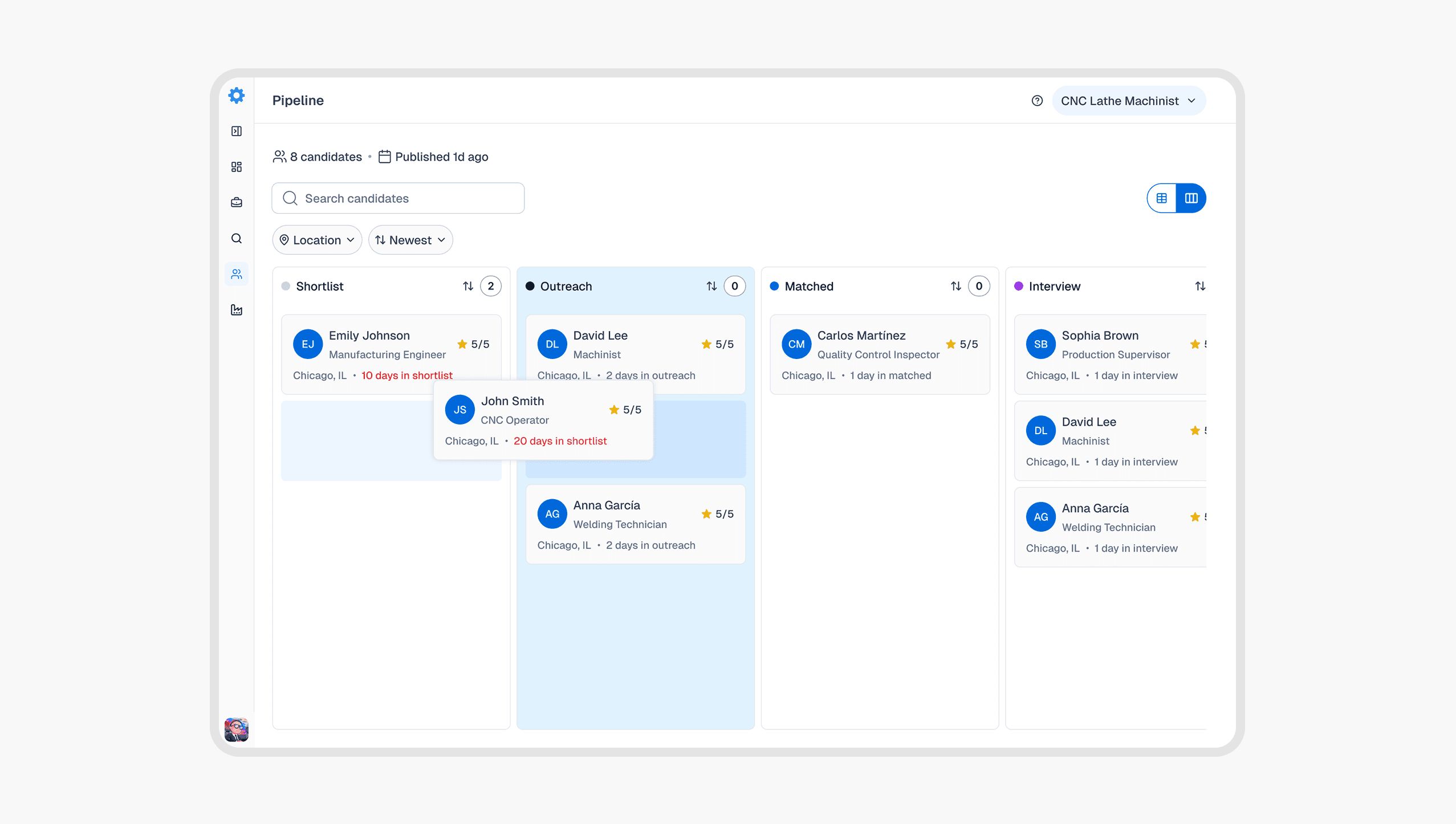 Recruiters are often juggling a dozen roles at once, and most hiring platforms slow them down instead of helping. LaborUp wanted to change that for manufacturing roles. They want to give recruiters a way to find, review, and reach out to candidates fast, without sacrificing thoughtfulness.